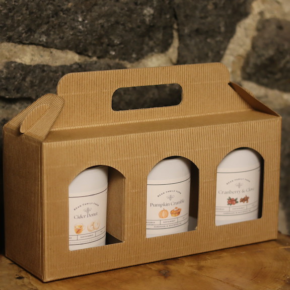 Bring the scents of fall into your home with our Bean Family Farm Beeswax Candle 3-Pack. Each set includes three hand-poured beeswax candles in festive seasonal fragrances:
